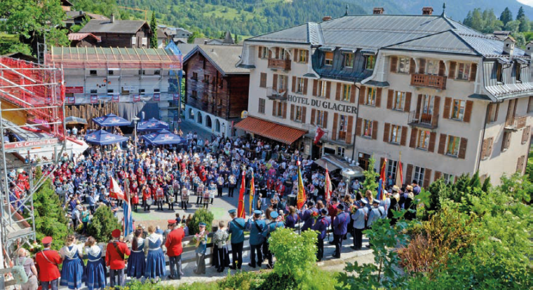 200 Musikanten bringen auf dem Fiescher Dorfplatz Stimmung in die Bude - WB vom 12.06.2023
